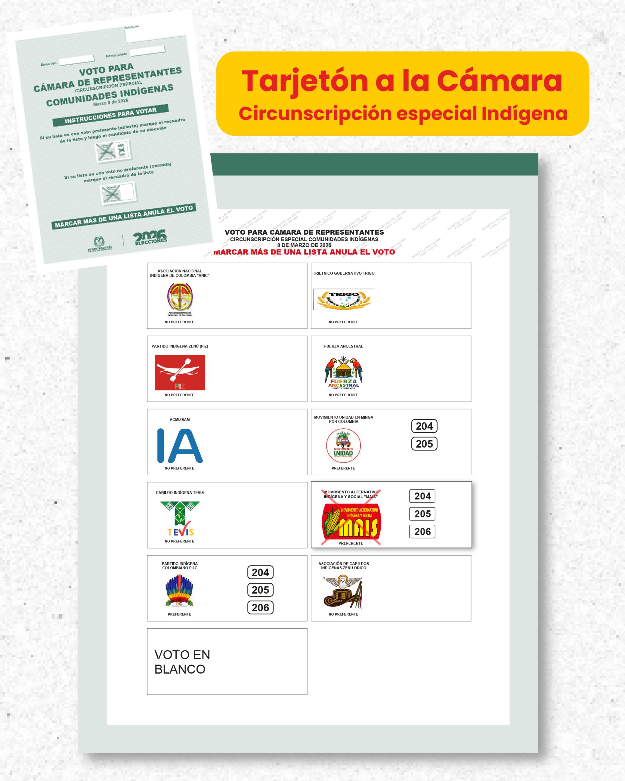 Candidatos a la cámara por la Circunscripción Especial Indígena