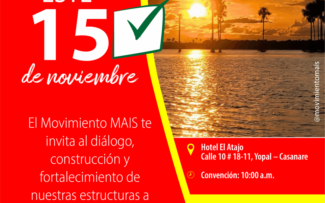La convención se llevará a cabo el 15 de noviembre de 2025, a partir de la 10:00 a.m. en el Hotel El Atajo ubicado en la Calle 10 # 18-11, Yopal – Casanare. su objetivo es elegir a los miembros de la Dirección Departamental, Veeduría Garante, Comité Ejecutivo Departamental y Órganos consultivos del MAIS entre otros asuntos de trascendencia regional.