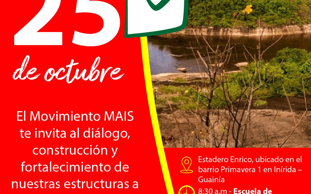 La convención se llevará a cabo el 25 de octubre de 2025 a partir de la 8:30 a.m. en el Estadero Enrico, ubicado en el barrio Primavera 1 en Inírida – Guainía. su objetivo es elegir a los miembros de la Dirección Departamental, Veeduría Garante, Comité Ejecutivo Departamental y Órganos consultivos del MAIS entre otros asuntos de trascendencia regional.